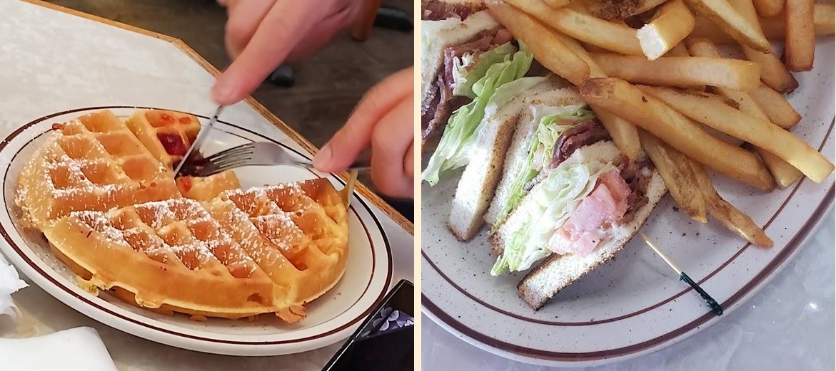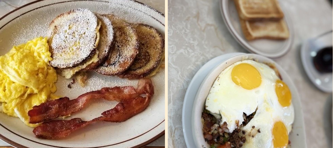 Some must-try dishes include the Eggs Benedict and the Fried Egg Sandwich. For breakfast, the Pancake Combo is fantastic. Waffles with ham and eggs are also popular choices.